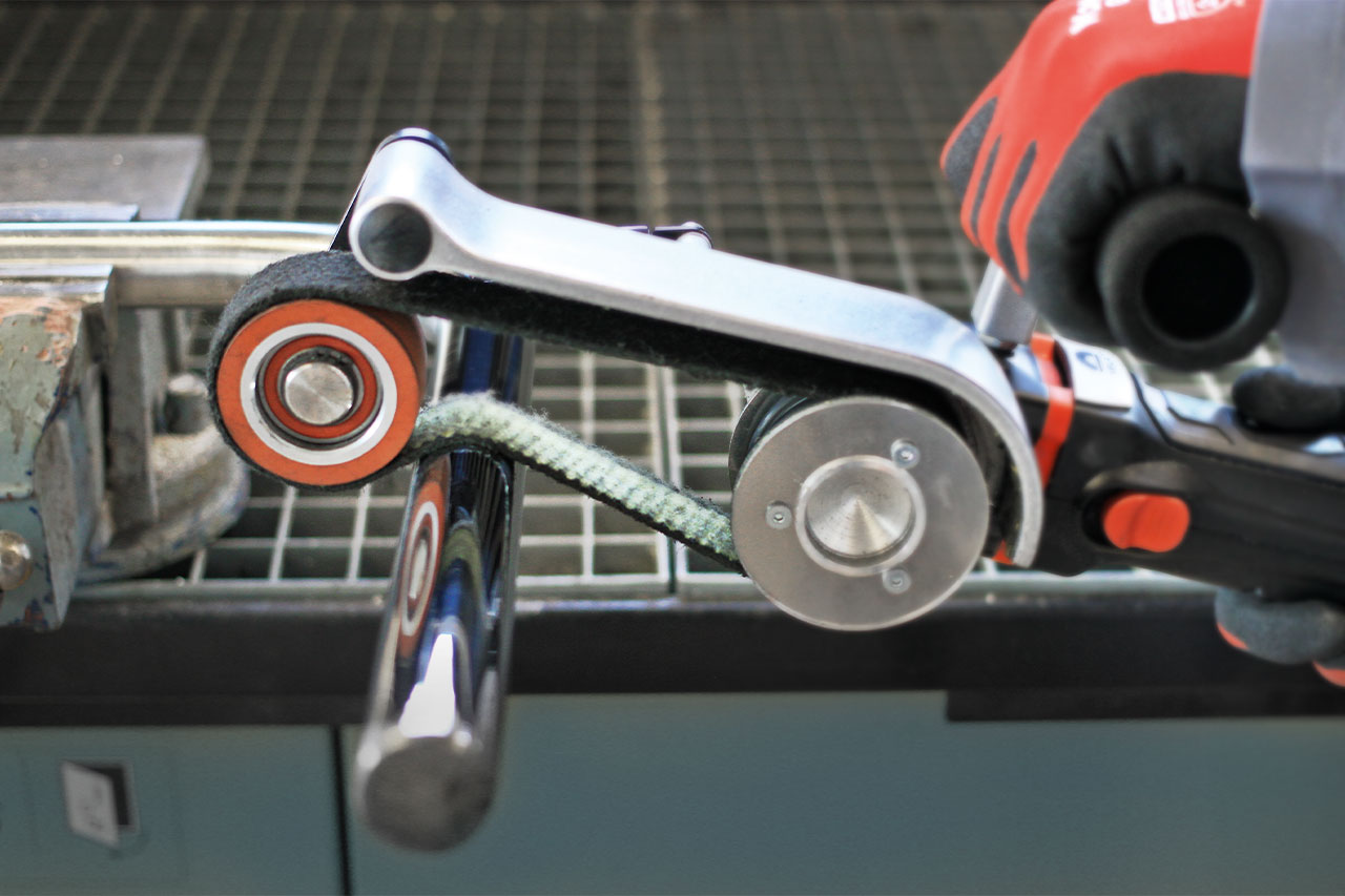- Patentiertes Dämpfungskonzept ermöglicht maximale „Rohrumschließung“ der Schleif- und Polierbänder ohne großen Kraftaufwand.