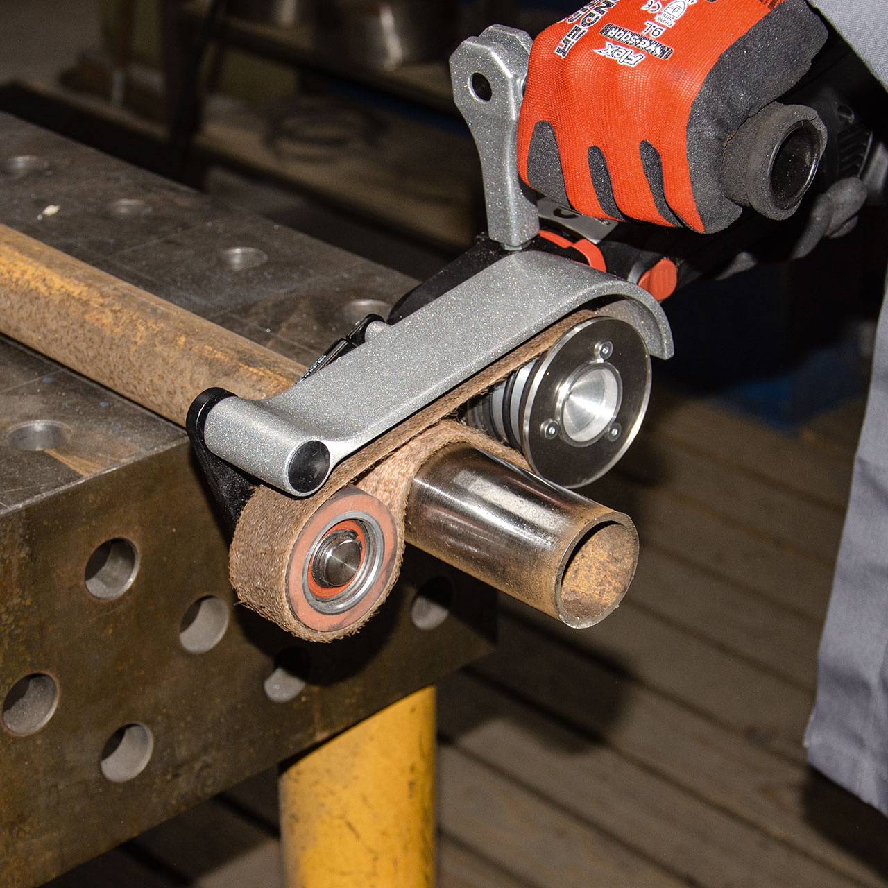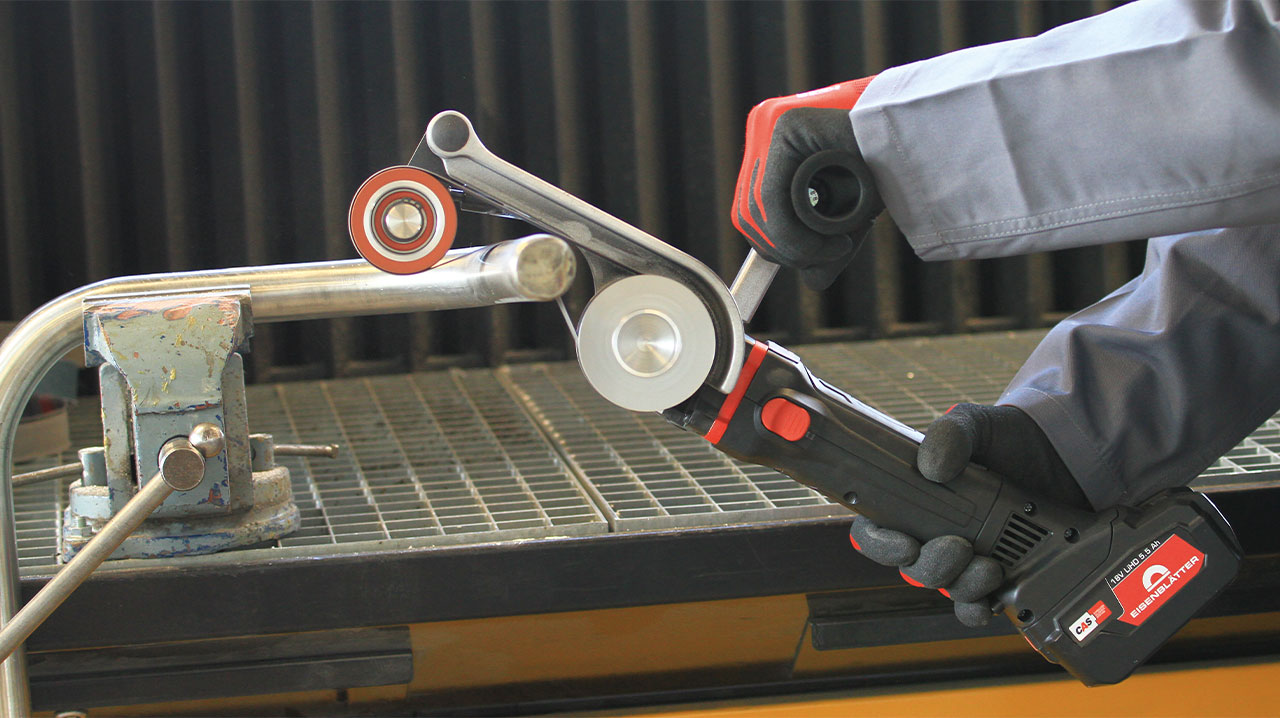 Das ideale, kabellose Rohrband-Schleifgerät mit der Kraft stromgebundener Maschinen dank Planetengetriebe. Perfekt auf Baustellen, Werften (z.B. Reling-Bearbeitung), Geländerbau und vieles mehr!