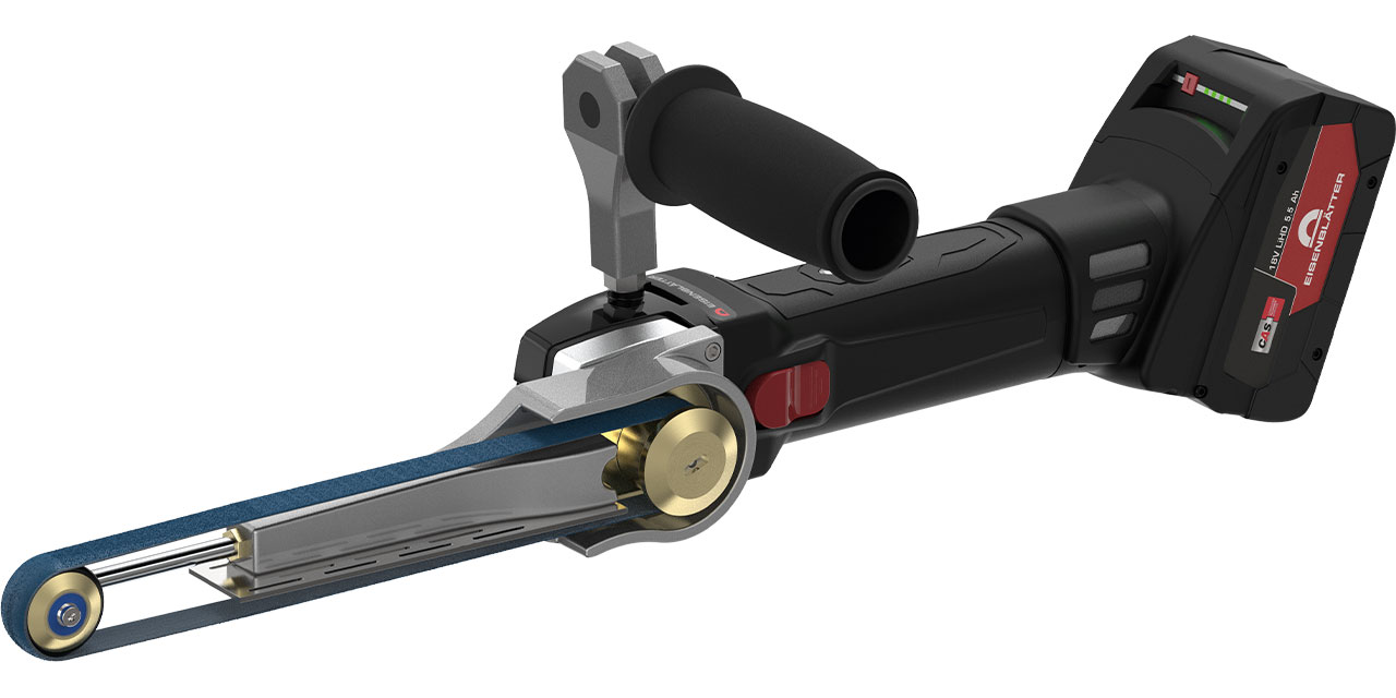 Die neu entwickelte, besonders kompakte, leistungsstarke und edle Bandfeilmaschine besitzt alle Eigenschaften und der kraftvollen Leistung, wie ein stromgebundenes Gerät. Dank des neuen und robusten LiHD Akku Motors.