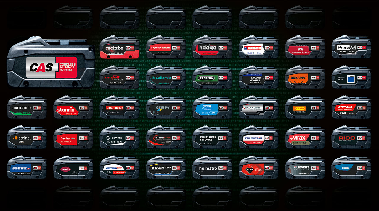 - Neue Akku-Schnittstelle CAS (Cordless Alliance System): kompatibel mit einer Vielzahl am Markt erhältlicher Antriebsmaschinen und Fabrikaten. Doppelnutzen und Einsparpotenzial Ihrer Akku-Packs inklusive.