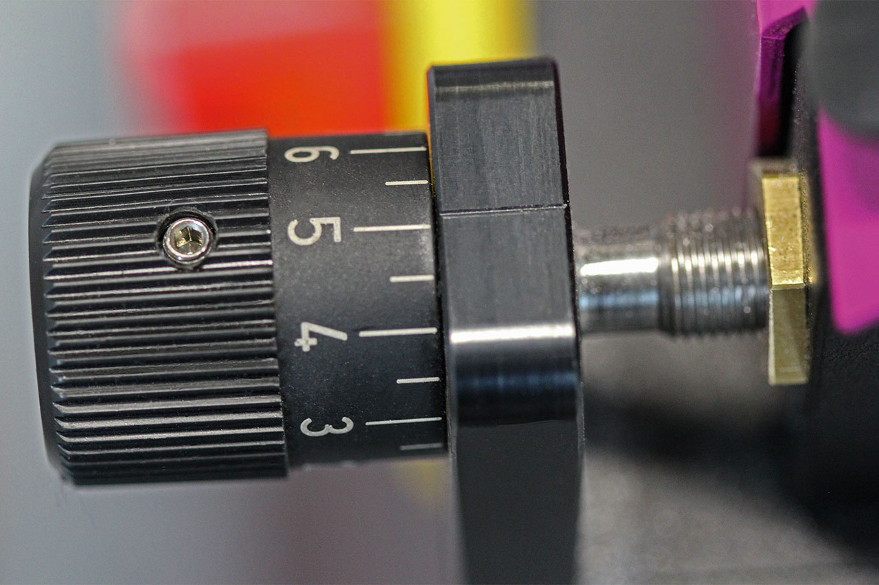 Der Scheibenverbrauch wird über ein Handrad mit Gewindespindel nachgestellt.