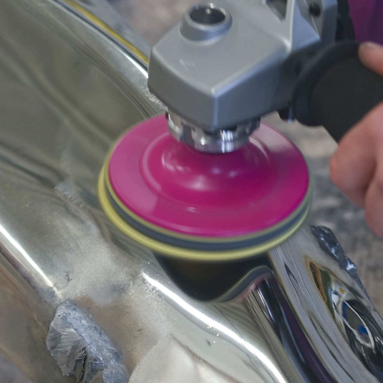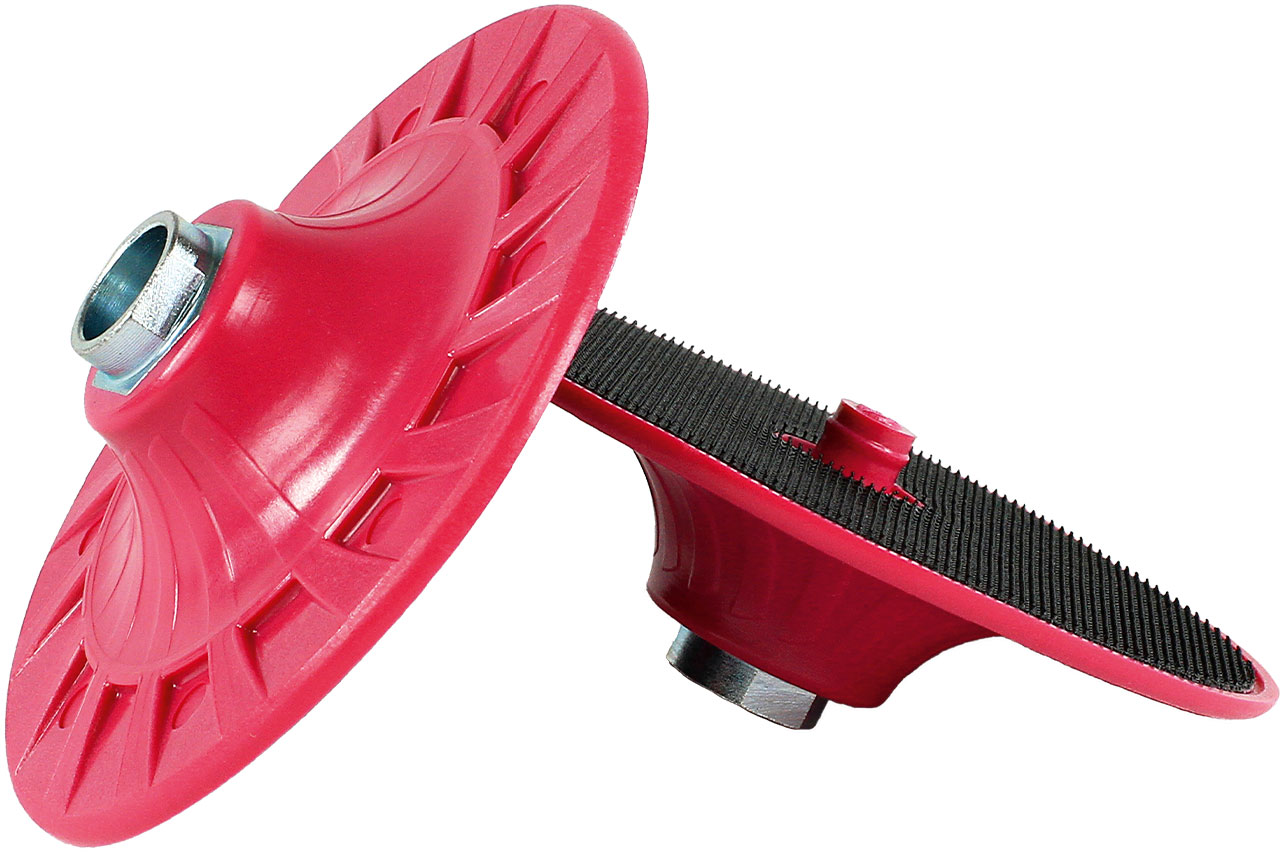 Flexible backing pad for the safe use of FIX HOOK & LOOP grinding and polishing discs. Velcro connection ensures quick disc changes and a secure hold of the tools. 100% concentricity thanks to the centering pin, so the tools are always precisely centered.