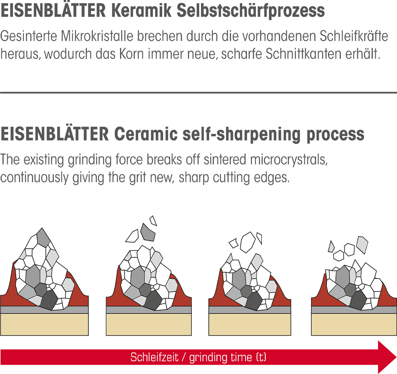 - Self-sharpening ceramic grit.