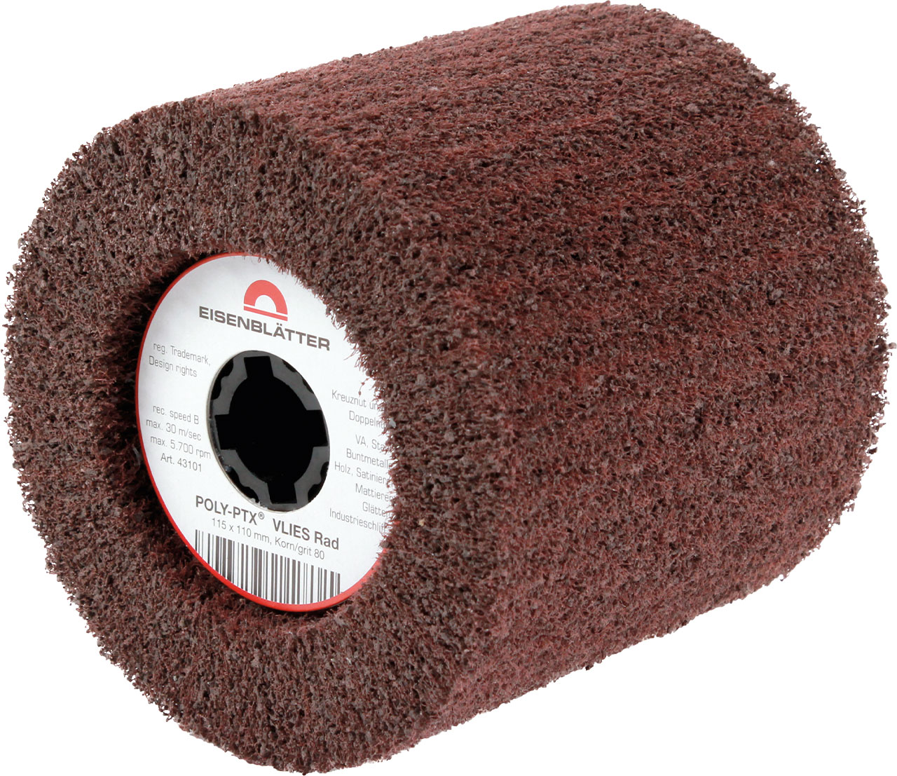 With grain 60, 80 and 180 with a diameter of 115 mm you get a working width of 110 mm (fits all satin finishing devices). As a result, the clamping screw is countersunk in the wheel and you can grind up to the edge area.
