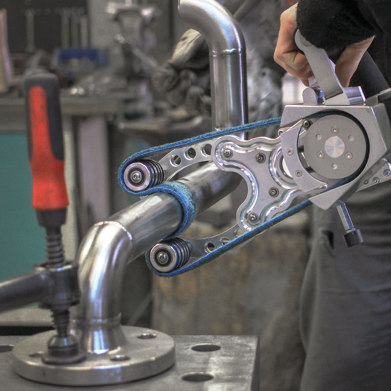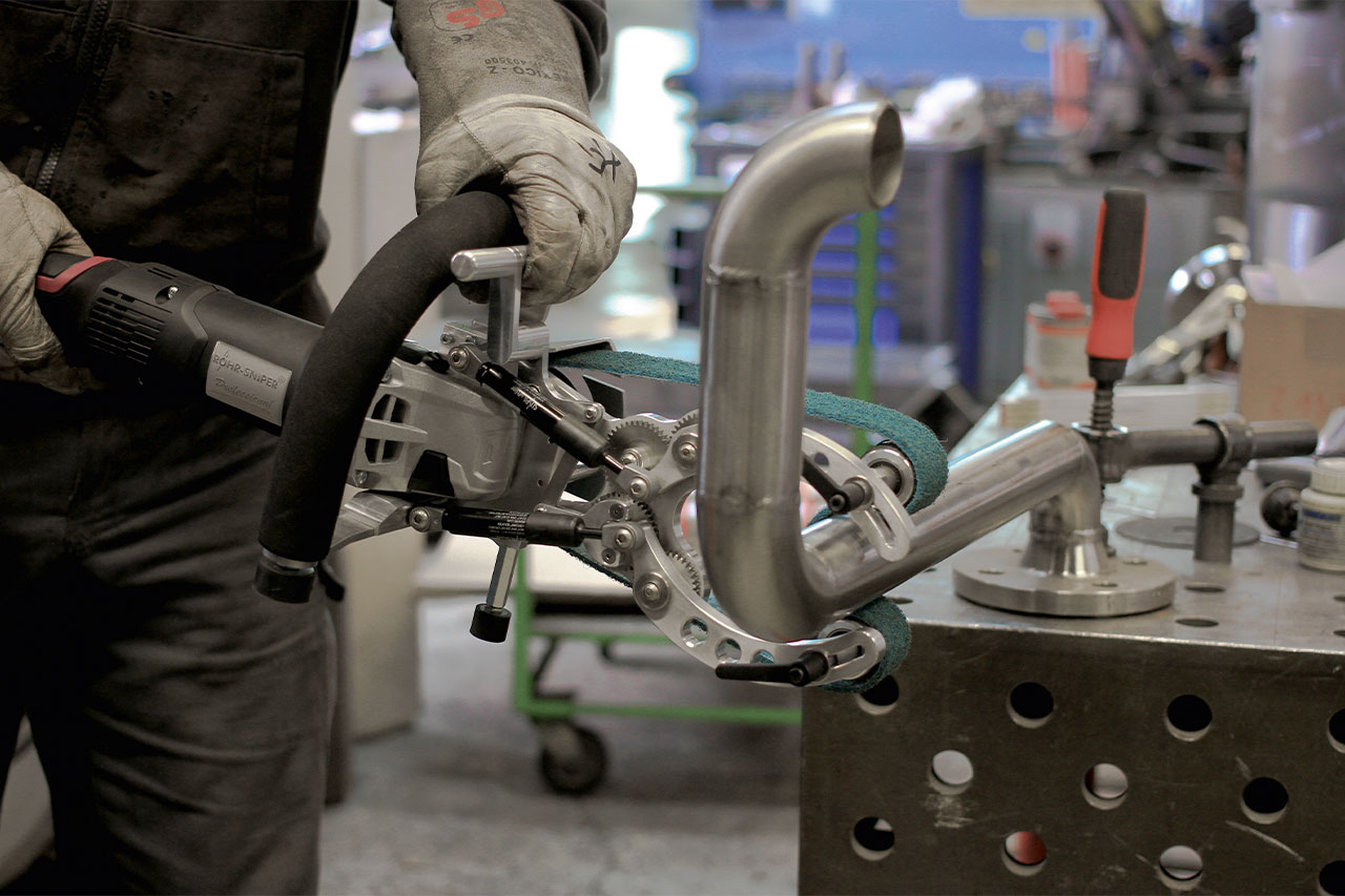 The pipe machining accessory set means that the right tools are always handy. The ideal addition to your machine. Suitable for many tasks ranging from coarse and fine grinding (industrial finish) to perfect mirror finishing – all safely stowed in the stable carrying case.