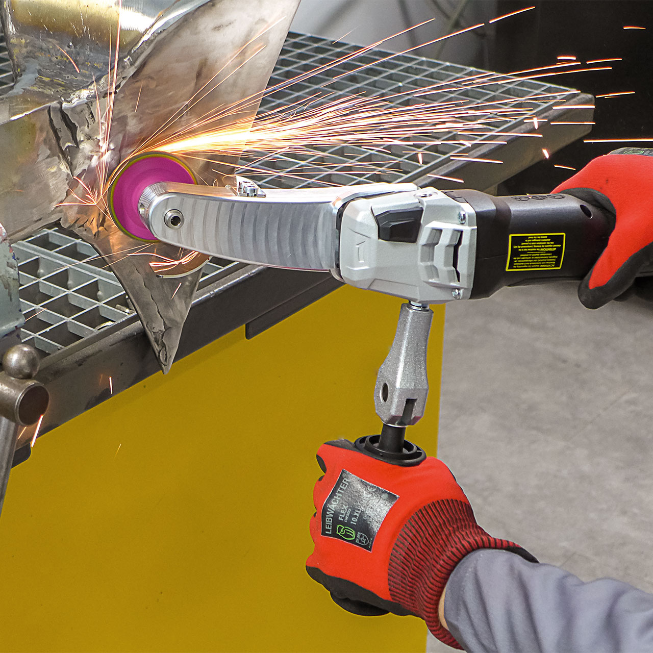 - For grinding jobs in hard-to-reach places (corners, edges, internal tanks, etc.), coarse grinding, fine grinding, satin finish, matt finish, polishing to a mirror finish, mini-cutting and cut-off grinding.