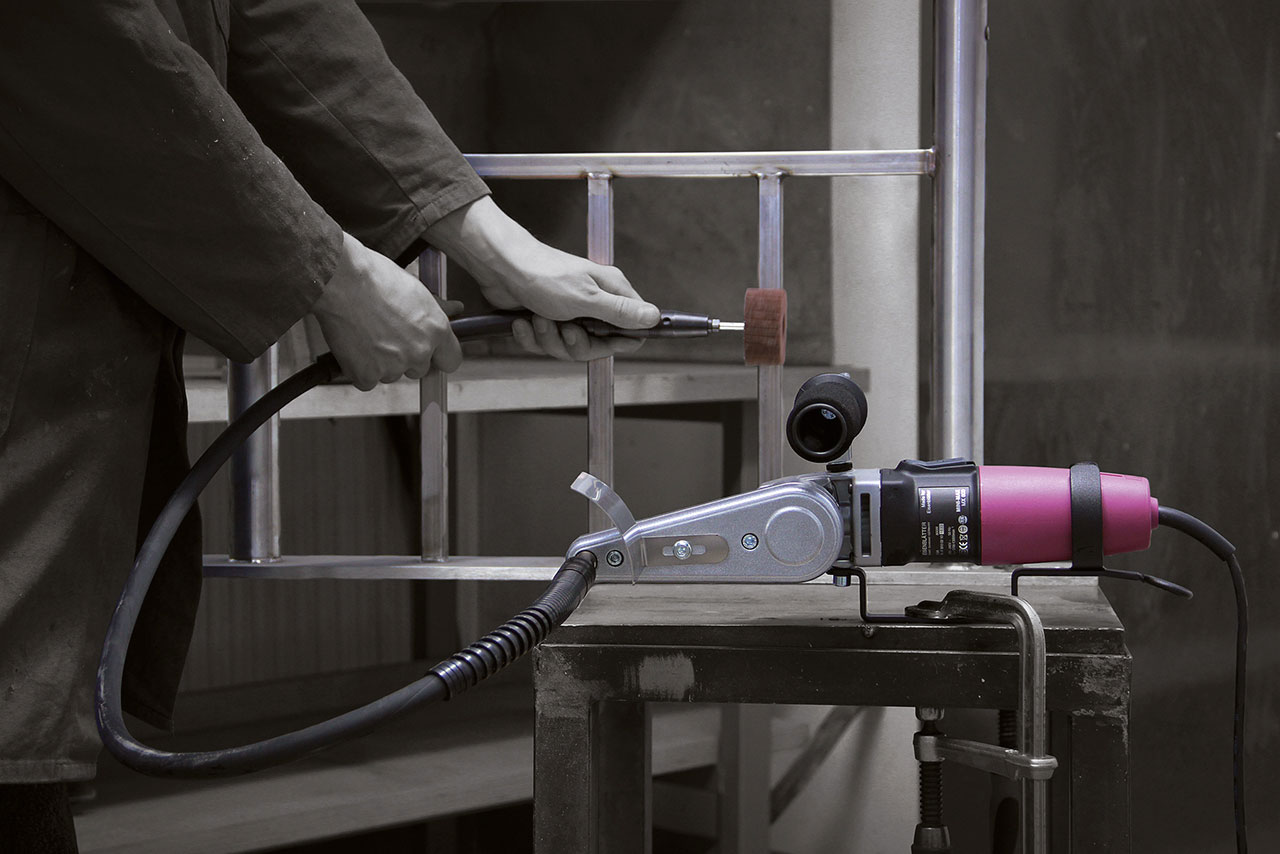Biegsame Welle mit Stahlseele zum Bearbeiten enger und besonders schwer zugänglicher Stellen. Alle Schleifwerkzeuge der MINI MAX®, des MINI FIX und des PINLOC Systems können auch mit der biegsamen Welle verwendet werden.